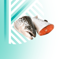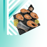 Стейк та хвіст лосося , вага 90-130 грамів. Суха заморозка.