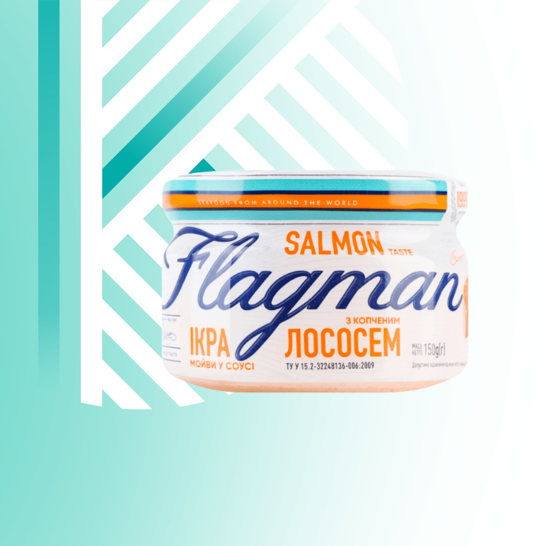 Ікра мойви в соусі з копченим лососем. Натуральна ікра в соусі з додаванням копченого лосося. Скляна банка вагою 150 г. Смачна закуска до святкового або обіднього столу.