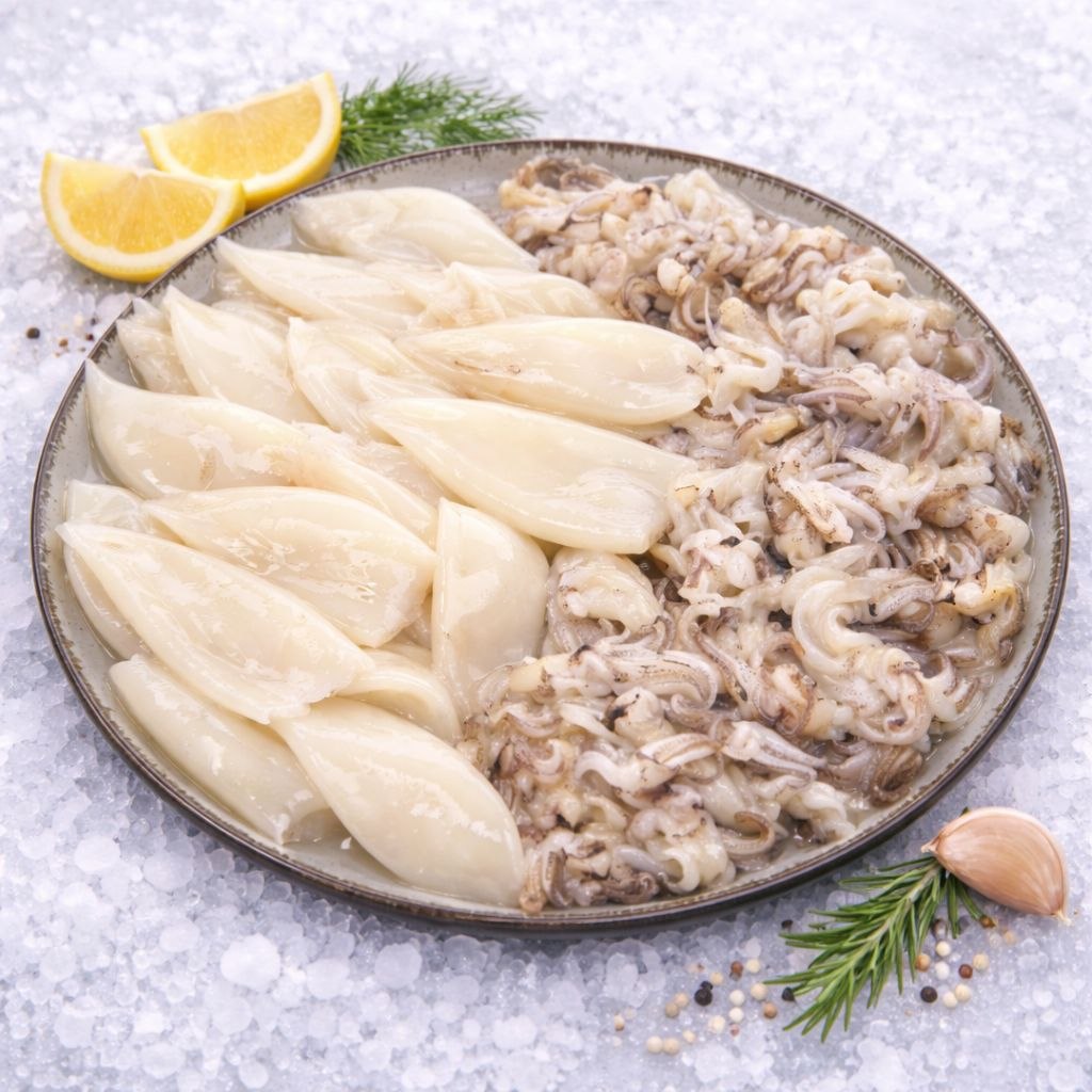 Це патагонський кальмар, який вважається одним із найніжніших видів кальмара завдяки тонкій стінці м’яса та солодкуватому смаку, трубки (тушки), повністю очищені від шкірки, нутрощів та хітинової пластини.