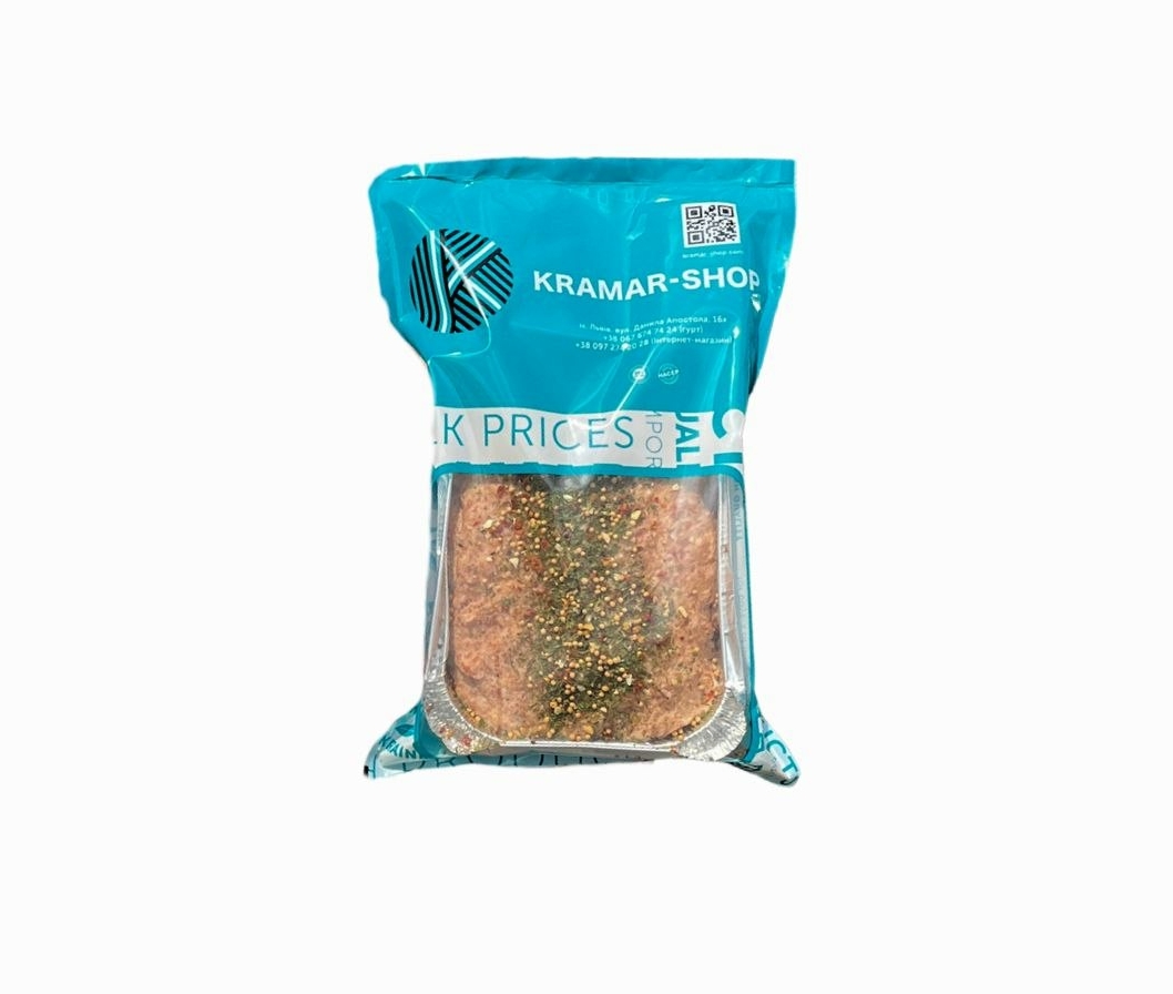 СКЛАД: філе білої риби, батон пшеничний, цибуля рібчаста, сало свинне, яйця курячі, молоко, паприка сушена шматочками, сіль кухонна, перець чорний мелений.