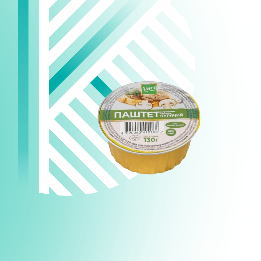 Інгредієнти: вода, механічно відокремлене м’ясо курки 16%, курячі шкірки 11%, курячі субпродукти, пшеничне борошно (містить глютен), манна крупа з пшениці (містить глютен), рослинна бамбукова клітковина, соєвий білок з насіння сої, емульгатор E472c, спеції, спеційні екстракти, підсилювач смаку E621, антиоксидант E301, ароматизатор грибний, сіль