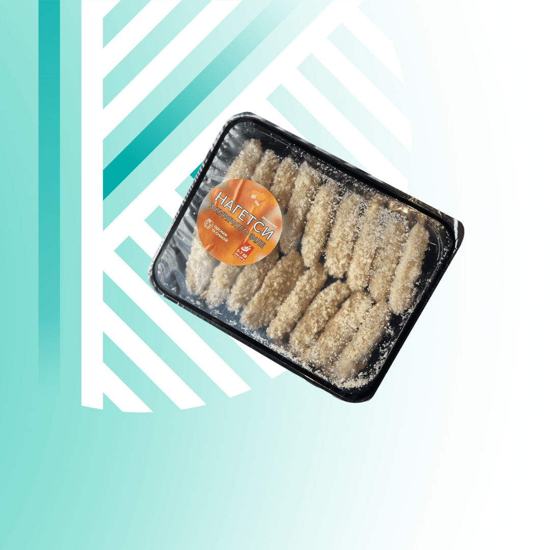 Склад: філе куряче, вершки 30%, яйця, сіль, майонез, пластівці панірувальні.