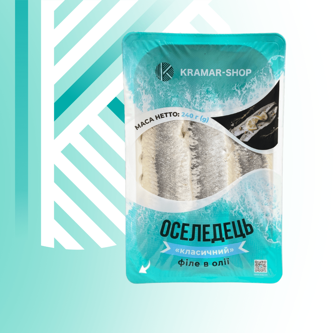 Склад: оселедець філе (70%), олія соняшникова рафінована на д дезодорована, сіль кухонна, підсилювач смаку ку та аромату глутамат на натрію консерванти сорбінова кислота, бензоат натрію, регулятори кислотності лимонна кислота, цитрат натрію глюконо дельта-лактон