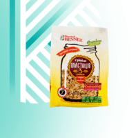 Склад: суміш пластівців 3-х злаків 96,5% (пластівці ПШЕНИЧНІ, ЯЧМІННІ, ВІВСЯНІ), насіння льону 2,5 %, висівки ВІВСЯНІ 1,0%.