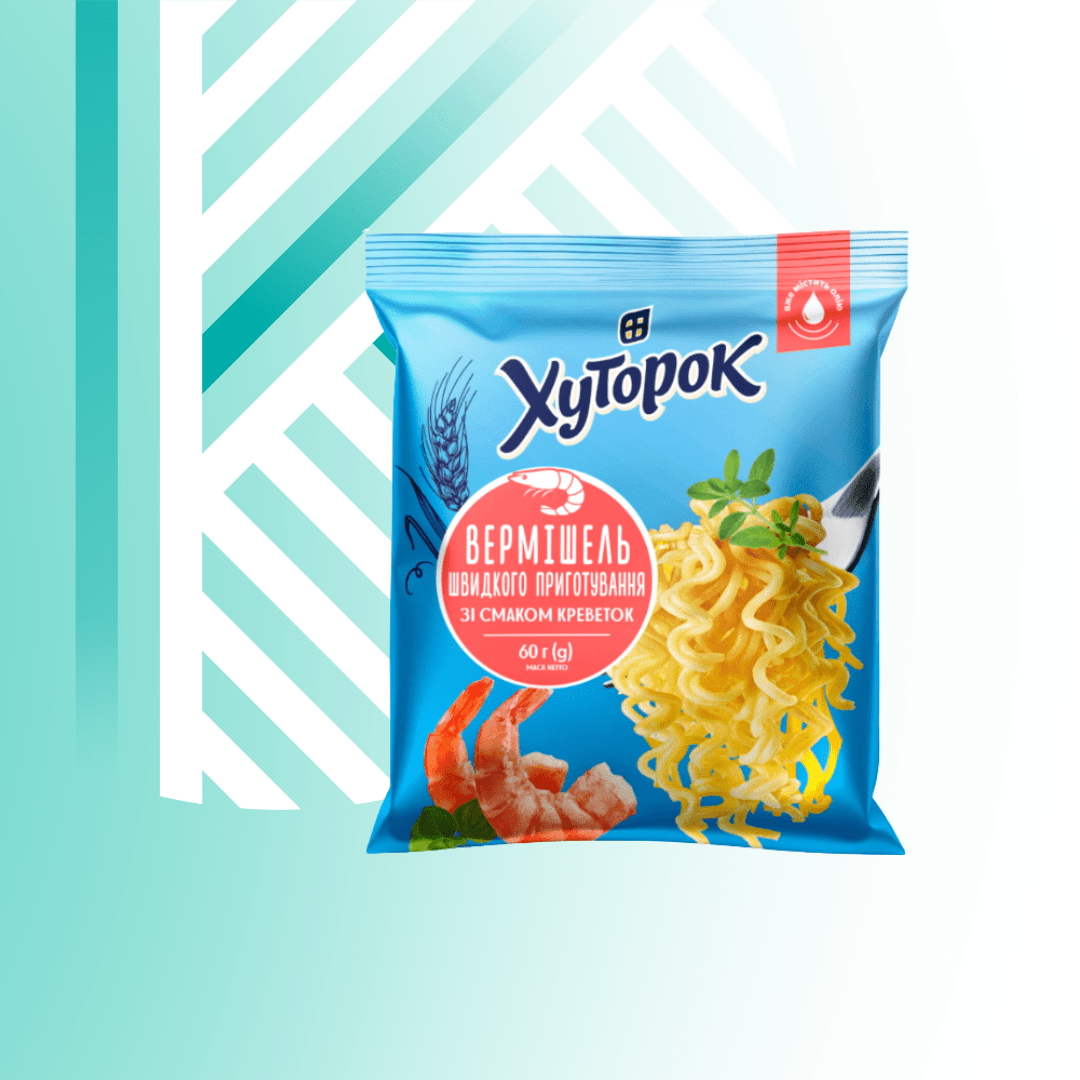 Вермішель 93,3 %: борошно пшеничне в/г, олія соняшникова високоолеїнова рафінована, вода питна, сіль кухонна, регулятор кислотності: карбонат калію, підсилювач смаку та аромату: глутамат натрію, стабілізатор: гексаметафосфат натрію, барвник бета-каротин.